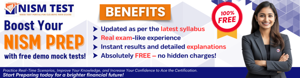Welcome to nismtest.in, the most comprehensive and reliable source for Free NISM Mock Tests, designed to help candidates prepare effectively for various NISM certification exams. We understand the importance of thorough practice and accurate assessment, which is why we’ve developed a full-fledged portal offering Free NISM Mock Exams, Sample Questions, and detailed explanations tailored for each NISM module.